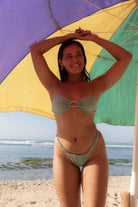 The Havana Bottom delivers cheeky coverage with adjustable gathered channeling for a fit that's just right. The wide waistband can be worn high or low on the hips, giving you the freedom to style it your way. We love pairing it with the Havana Top or the Fira Top for a complete look.