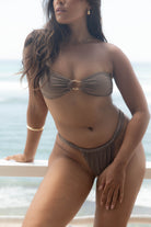 The Havana Top reimagines the classic bandeau style with a chic twist, featuring our signature gold 'Isla' ring at the front and a delicate Malaya plaque. Its adjustable tie-back design ensures both comfort and a perfect fit. While we love it paired with our Havana Bottoms, it’s designed to complement any of our bottoms for a unique look that’s all your own.